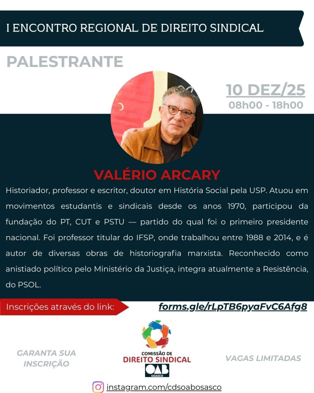 Com foco na integração entre a advocacia e o movimento sindical, o encontro busca fortalecer o debate público sobre democracia, ética profissional e a defesa das liberdades coletivas, áreas que seguem no centro das disputas trabalhistas e institucionais do país.