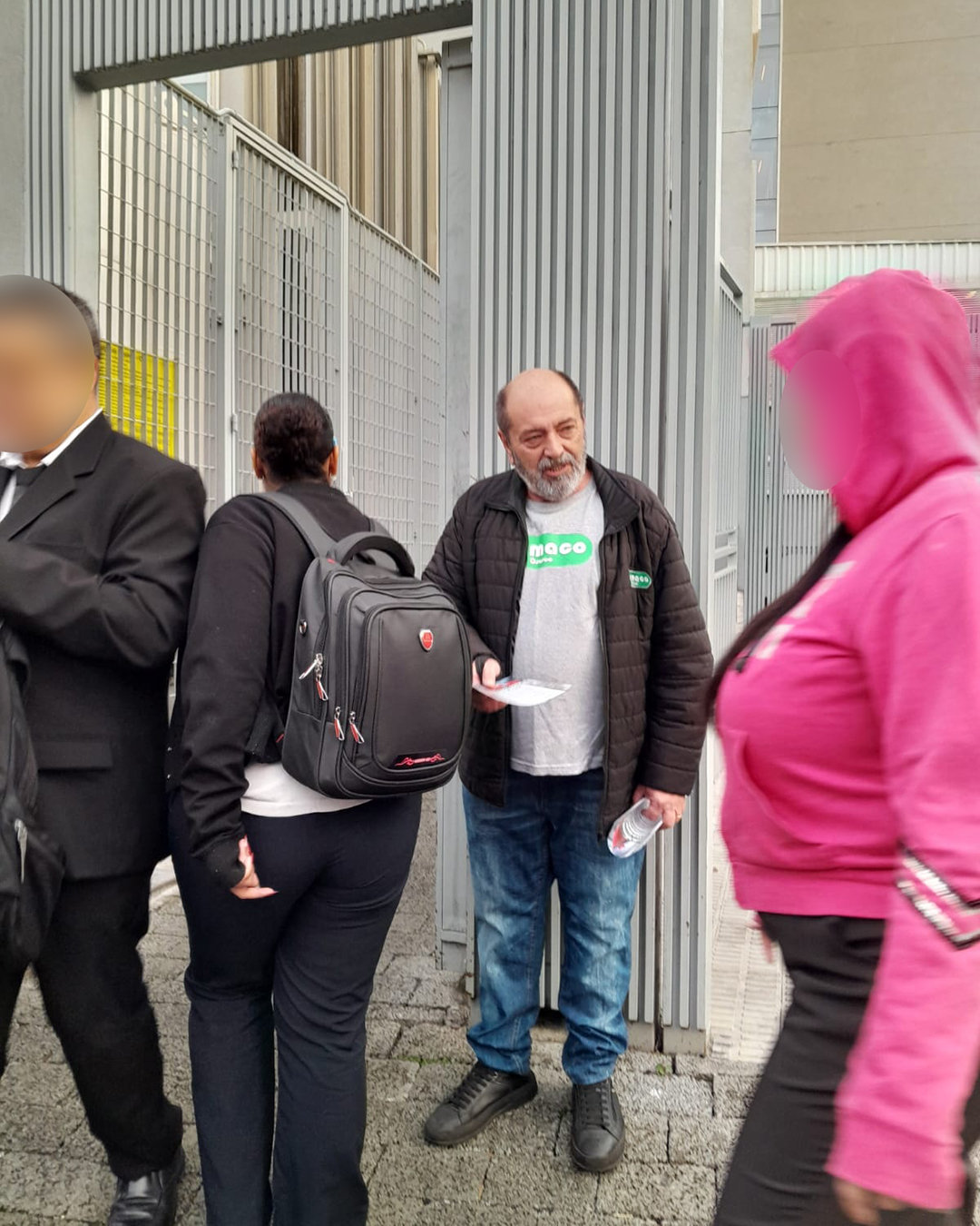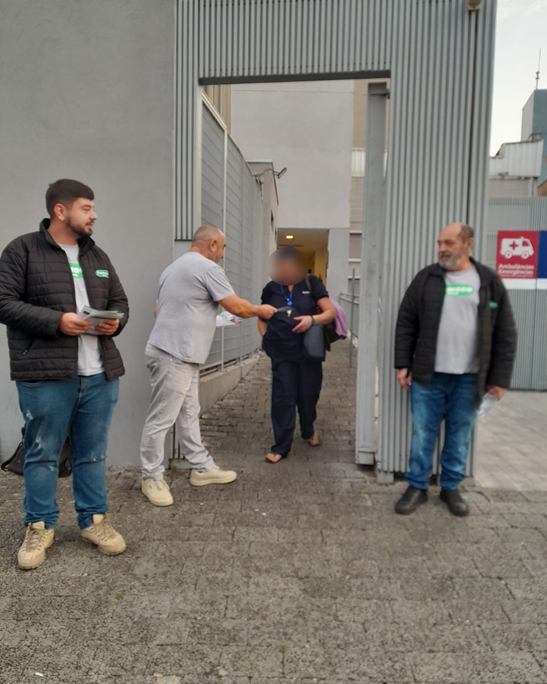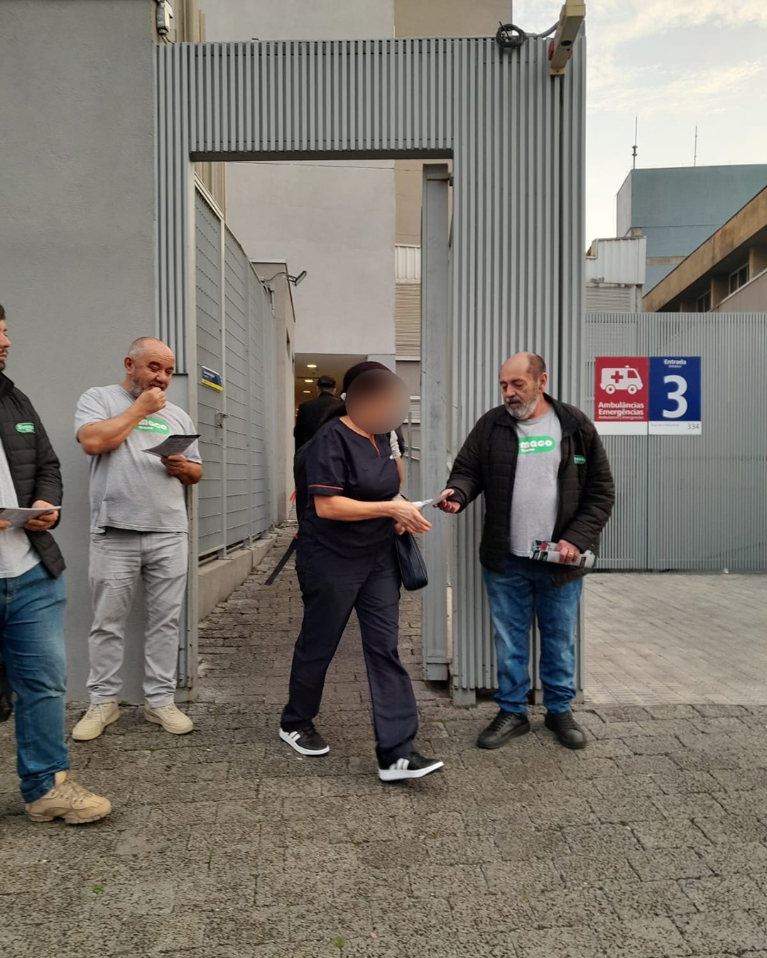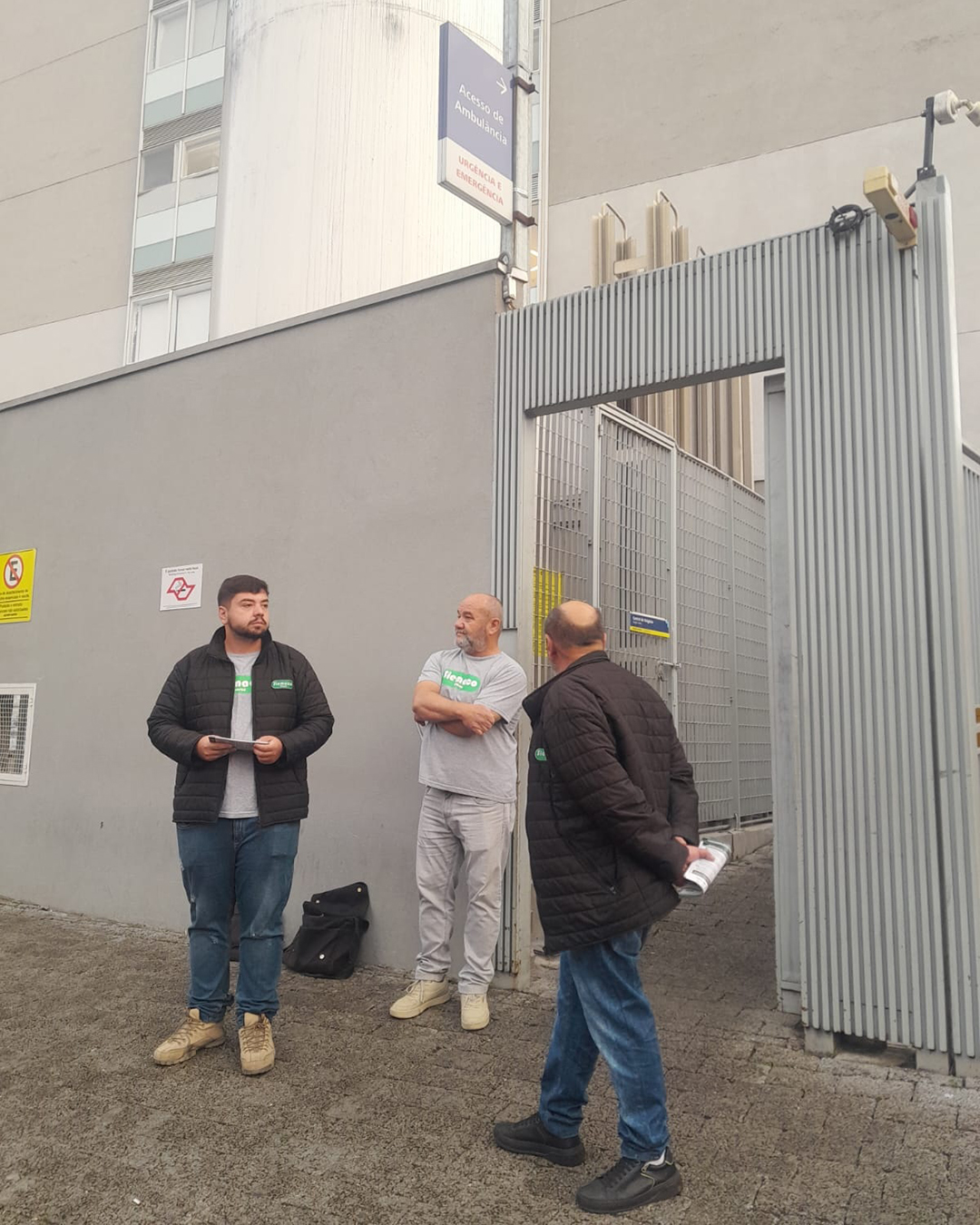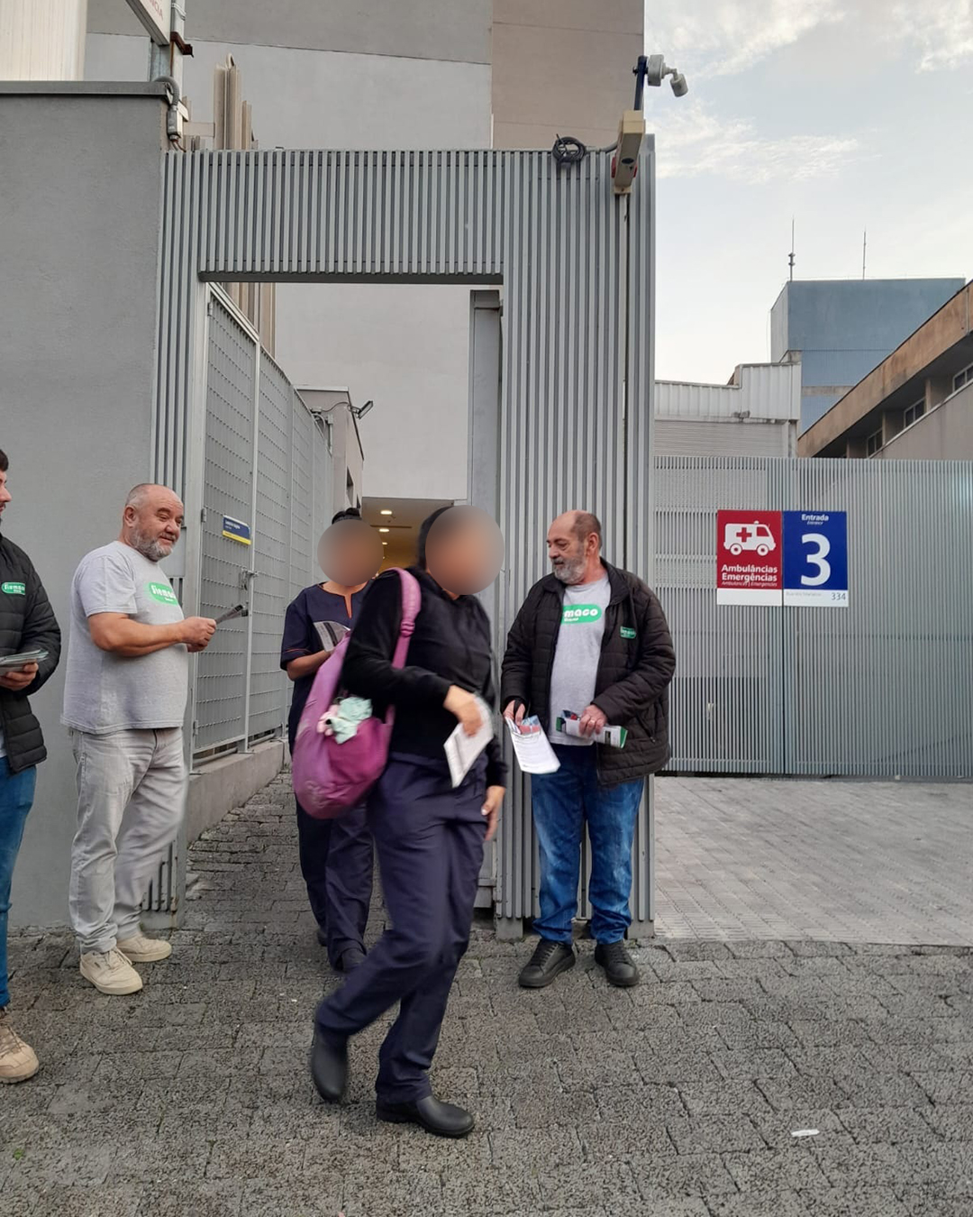 Nesta segunda-feira (13/10), o Siemaco Osasco esteve na entrada do Hospital São Luiz, em Osasco/SP, para realizar uma panfletagem junto aos trabalhadores que prestam serviços de limpeza e conservação no hospital, categoria representada pelo sindicato.