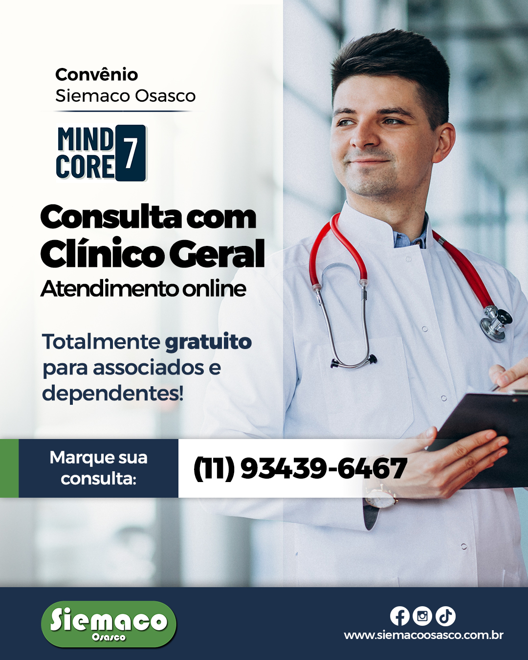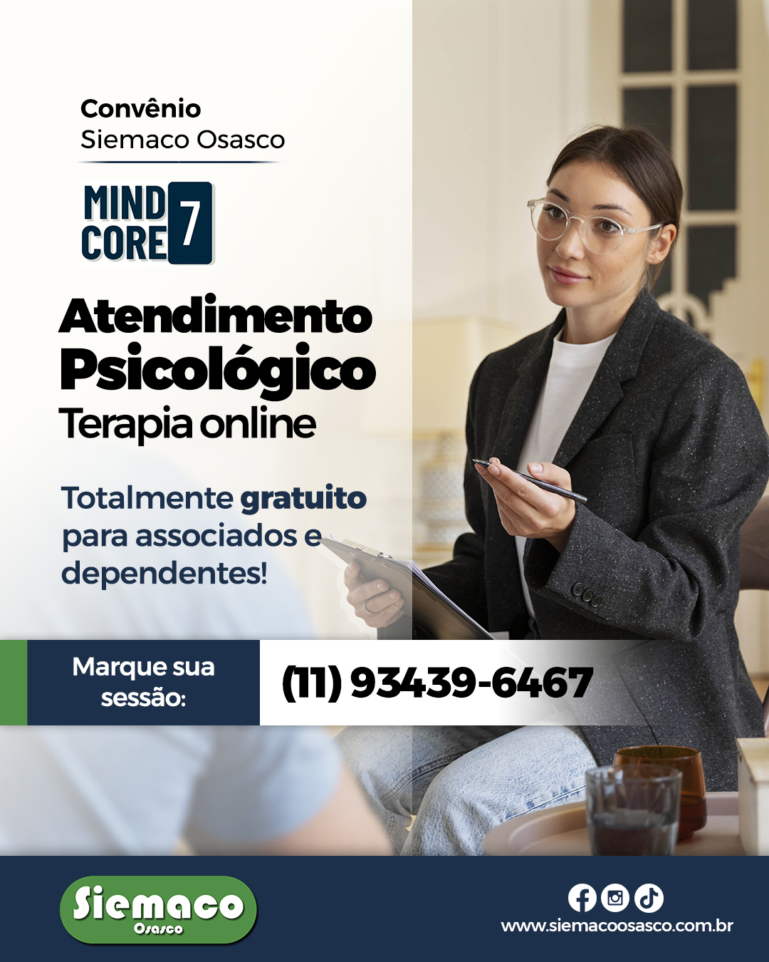 O Siemaco Osasco possui parceria com a Mind 7 Core para oferecer a todos os nossos associados e dependentes atendimento gratuito via telemedicina com profissionais de saúde nas especialidades de clínica médica, psicologia e nutrição.